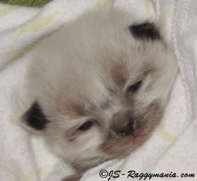Eyes come open at around 10 days and are normally ready to go to their new homes at 12 weeks of age with everything necessary for his/her first year in their new home. They are litter trained, spayed or neutered and have received all first year vaccines and de-worming. Every Raggymania Ragdoll kitten receives a complete physical by our veterinarian and is fully guaranteed by contract. We are not authorized to give the rabies vaccine and you will need to consult your chosen veterinarian for advice and administration.